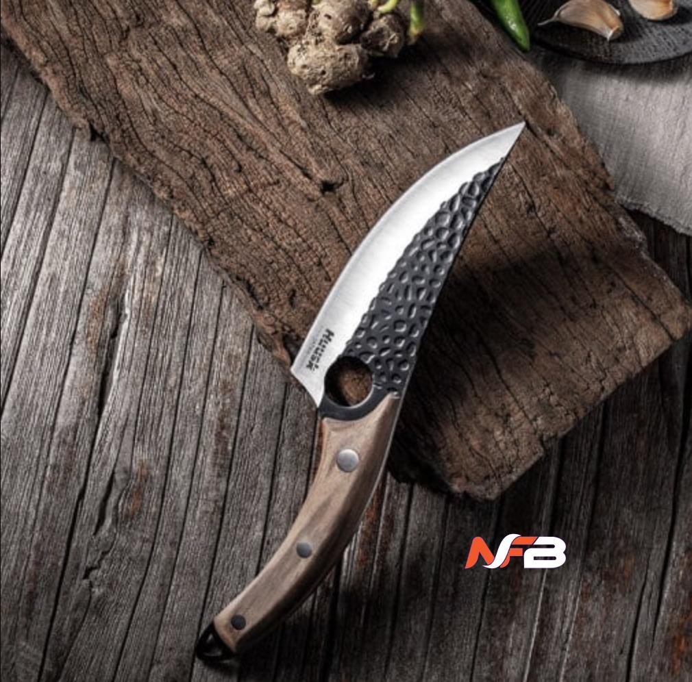 - Ergonomic Design: The knife’s handle is crafted from high-quality oak wood, providing a comfortable and secure grip. The unique finger hole in the blade offers unparalleled control, allowing for precise cuts and reducing hand fatigue during extended use.